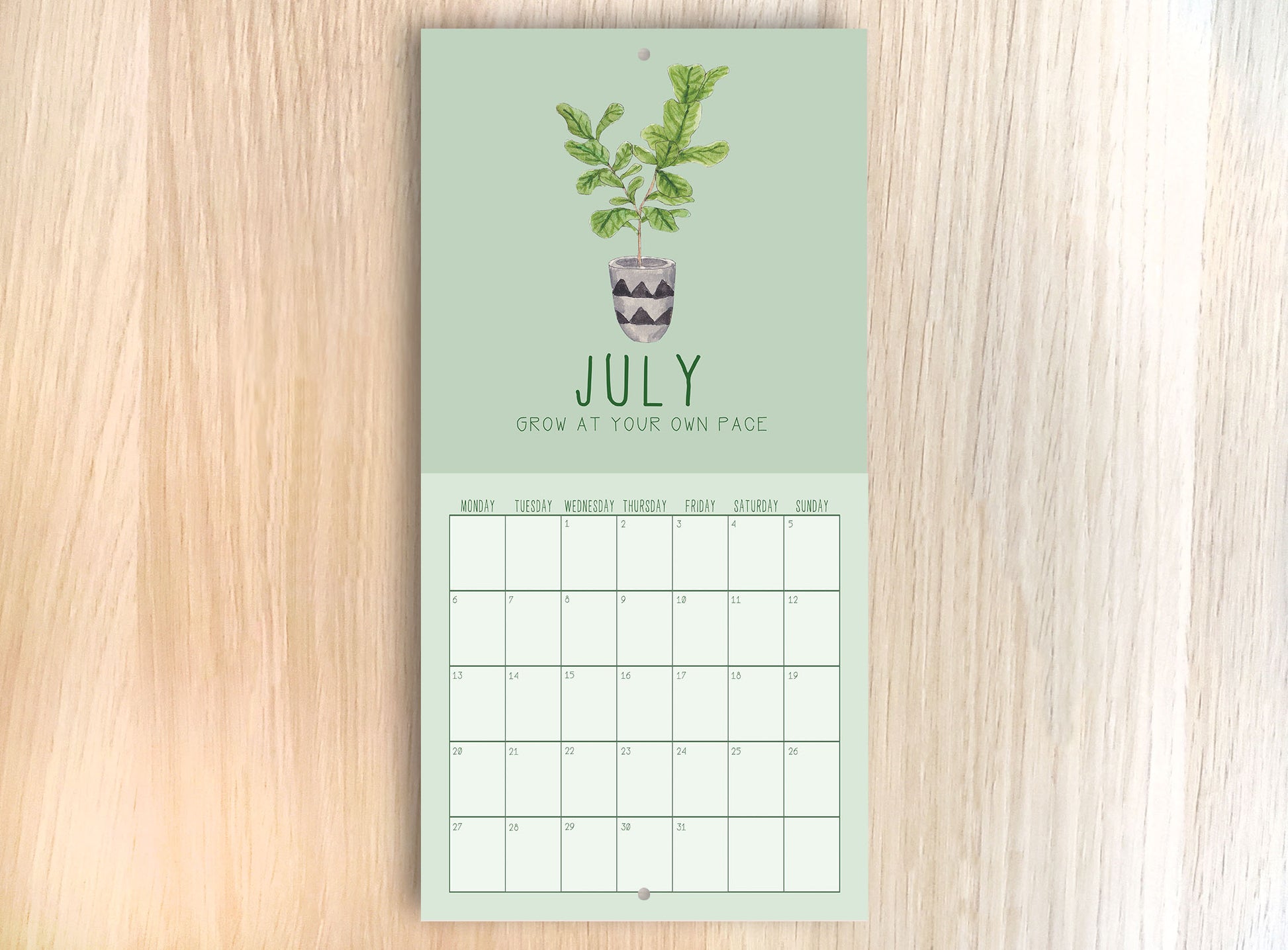 Each month features a different watercolour illustration of a different plant coupled with a positive plant pun!