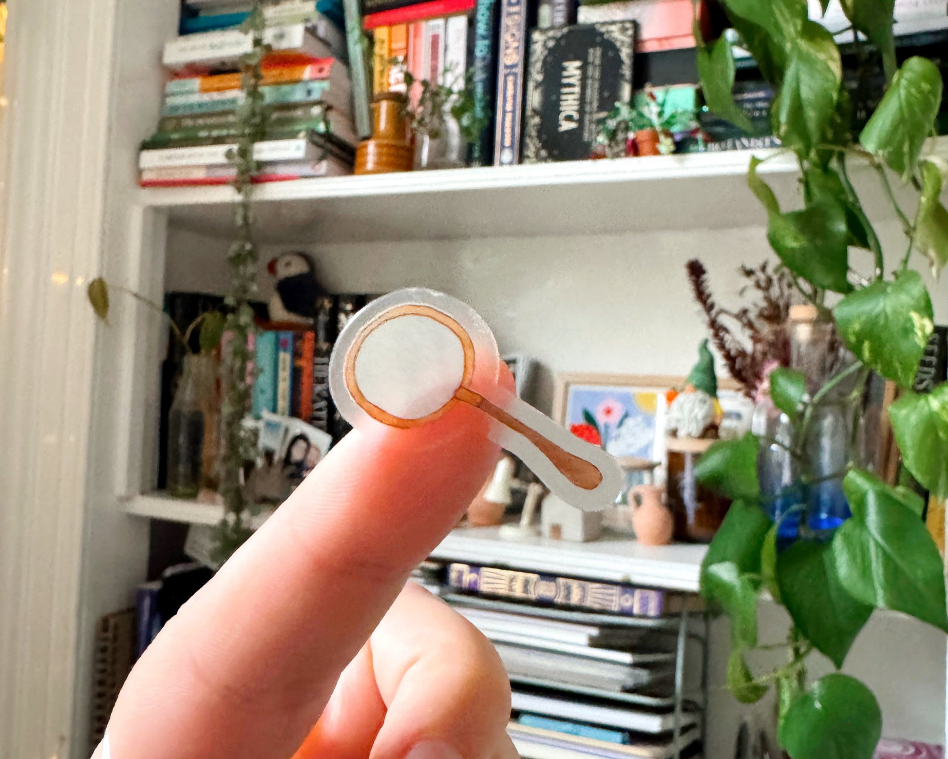 Cute bookish/academia themed sticker sheet. This one was a printing error as areas of transparency are not transparent (e.g. centre of magnifying glass and other glass segments that were supposed to be transparent are opaque). This does not effect the use of this sticker sheet generally was just not as ordered.