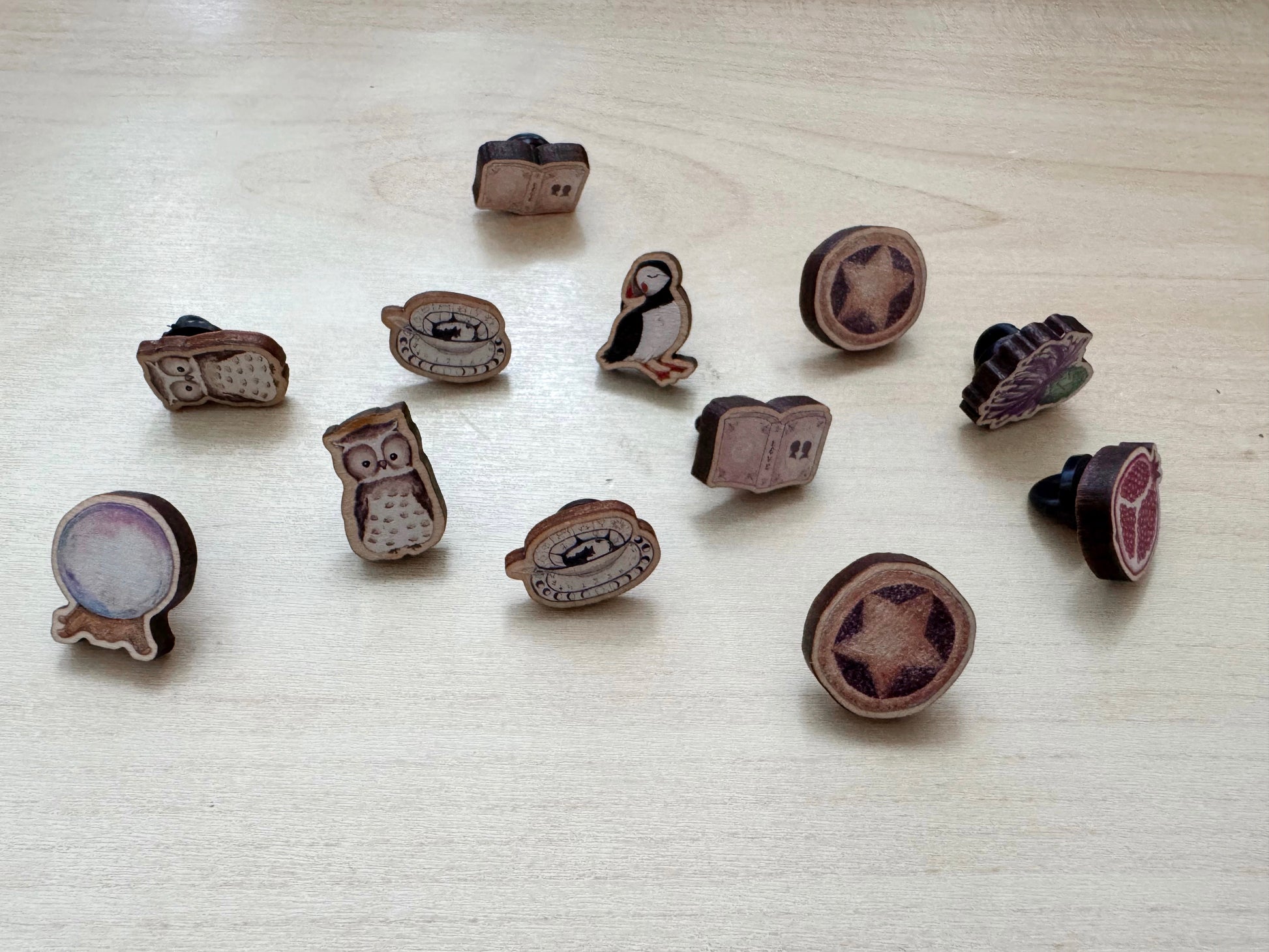 SECONDS - these are seconds products - they have imperfections which may be front or back - printing errors, wood burn or the backs on these pins are glued off centre.