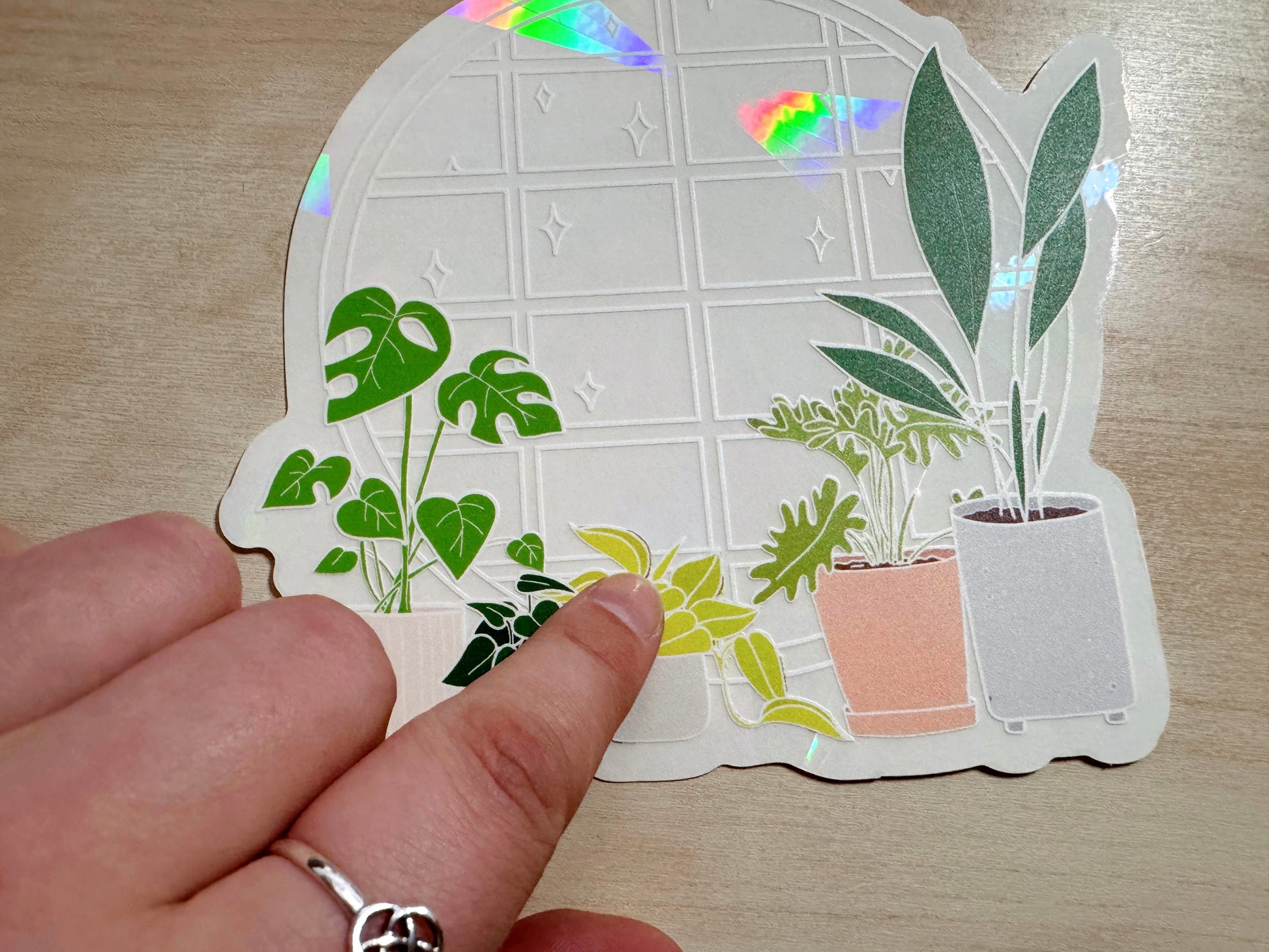 This plant themed suncatcher sticker is designed to cast rainbows all over your house! For RAINBOWS all over your house pop this sticker on a window that gets some direct sunshine and enjoy the rainbows!